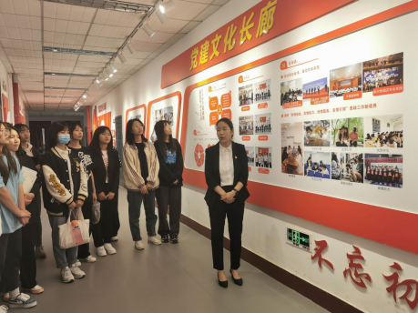 按照“学党史、强信念、跟党走”学习教育工作要求,4月26日,bg大游集团官方网站团委书记张彦彦带领团学骨干参观公司党建“一室一品一长廊”,开展以“青春向党·奋斗强国”为主题的团课,通过参观学习,讲述了一堂“沉浸式”的党史主题团课