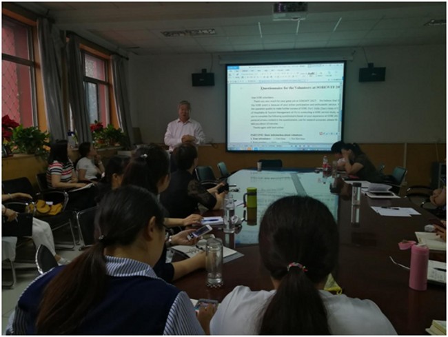 讲座主要围绕从如何发表高质量学术论文展开。用几篇英文文献分析了一些同旅游管理相关的高端期刊,如何投稿以及在投稿中需要注意的问题,各个期刊都有自己的特色,期刊评审在审阅时会侧重那些点来分析。例如:《Tourism Management》会相对侧重于数据的收集和有效性数据的数量,认为这是做学术研究的前提。在座谈结束后,各个老师发表了自己的看法,并针对文章写作和投稿中面临的一些问题同赵教授进行了沟通;公司房地产专业的老师,询问了赵教授,今后旅游休闲地产发展的方向,以及课程教材选取的意见。赵教授一一进行了解答,并提出了宝贵意见。