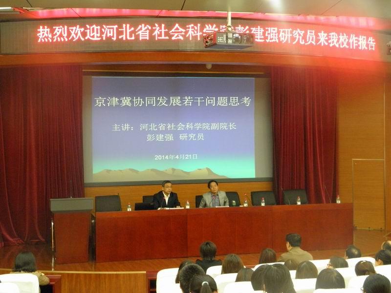 4月21日下午,应bg大游集团官方网站邀请,河北省社科院副经理彭建强在公司国际学术报告厅做了题为“京津冀协同发展若干问题思考”的学术报告。报告会由公司党委常委、副董事长武建奇主持,300余名师生聆听了报告。