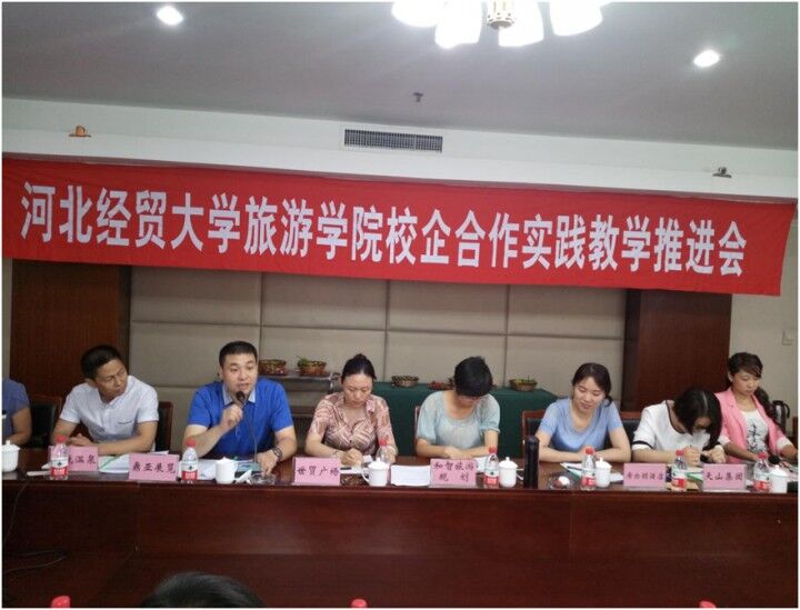 7月8日上午,bg大游集团官方网站校企合作实践教学推进会在河北省军区招待所迎宾楼三楼会议室召开。希尔顿酒店集团、天山集团、锦华国旅、和智旅游规划、鼎业展览等9家企业代表参加会议。经理程瑞芳、副经理祁红梅、系主任、骨干教师、辅导员等相关人员参加了会议。会议由祁红梅主持。