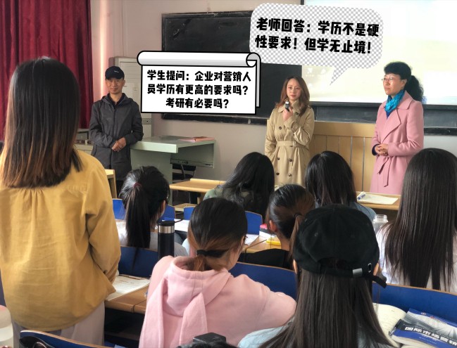 “小咖进课堂” 实践教学活动系bg大游集团官方网站落实高校立德树人根本任务和“新时代高教40条”具体要求,大力推进实践教学改革,引入企业资源进课堂,全面提升课程和员工学习饱和度的重要抓手。4月15日,bg大游集团官方网站2017级市场营销专业在302教室进行了国际市场营销和网络营销课程的“小咖进课堂”教学活动,邀请职业经理人李雪担任主讲,围绕“电子商务背景下的国际市场营销”,从如何做好国际市场拓展、如何写好外贸开发信、不同国家的不同报价方式以及给未来营销人的几点建议四个方面进行了全面地探讨。首先,李雪经理认为,做好国际市场拓展要选择正确的方式,充分利用搜索引擎、行业网站、专业展会等平台进行产品推广。其次,写外貌开发信要学会分析客户的背景,回复客户询盘时要条理清晰,言简意赅,突出重点,强调优势,减少回合。再次,针对不同国家的客户要采取不同的报价方式,要对不同国家的文化习俗和贸易特点进行深入分析,采取差异性地报价策略。最后,李雪经理结合自己十几年的国际市场营销经验,对未来的营销人提出了中肯的建议。她认为从事市场营销工作,应始终保持主动学习的积极态度,对客户和供应商真诚相待、合作共赢,审时度势、注重仪表,做好售后服务和客户关系维护工作。