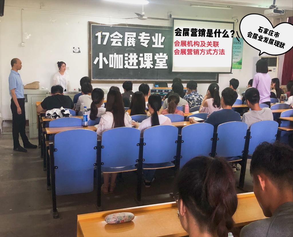 5月23日,bg大游集团官方网站2017级会展经济与管理专业在206教室进行了会展营销的“小咖进课堂”教学活动,邀请石家庄国际会展中心会议销售代表刘丹丹担任主讲。