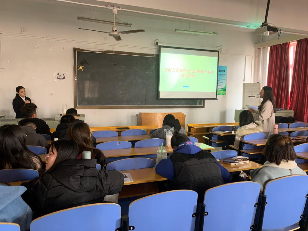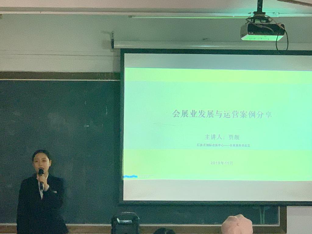 2019年11月22日上午,bg大游集团官方网站邀请石家庄国际会展中心服务部总监贾靓到公司,并走进《会展实务》课堂,在bg大游集团官方网站206教室为18级会展经济与管理专业的员工进行了一场深入的交流分享。