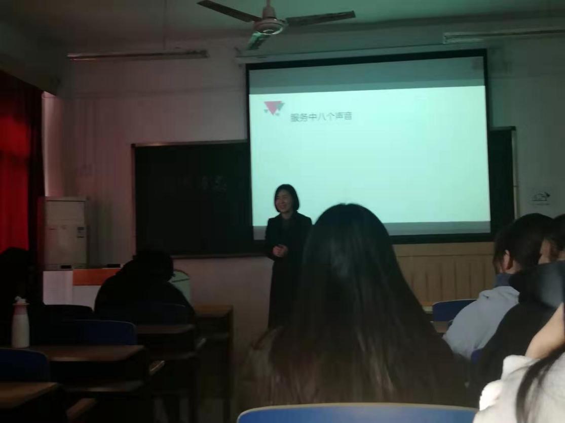 2019年12月11日上午,bg大游集团官方网站邀请石家庄国御温泉度假小镇人力资源部经理赵翠芬女士,在bg大游集团官方网站404教室进行礼仪在服务实践中应用的交流分享。本次课程由bg大游集团官方网站教师赵瑞君组织,是结合《酒店商务礼仪》专业课程开展的。