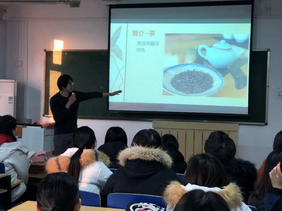 2019年12月12日上午,台湾铭仁鸿荣茶园高级制茶师林浚腾来到了《旅游风景美学》课堂,为17级高本旅游的同学带来了精彩讲演。