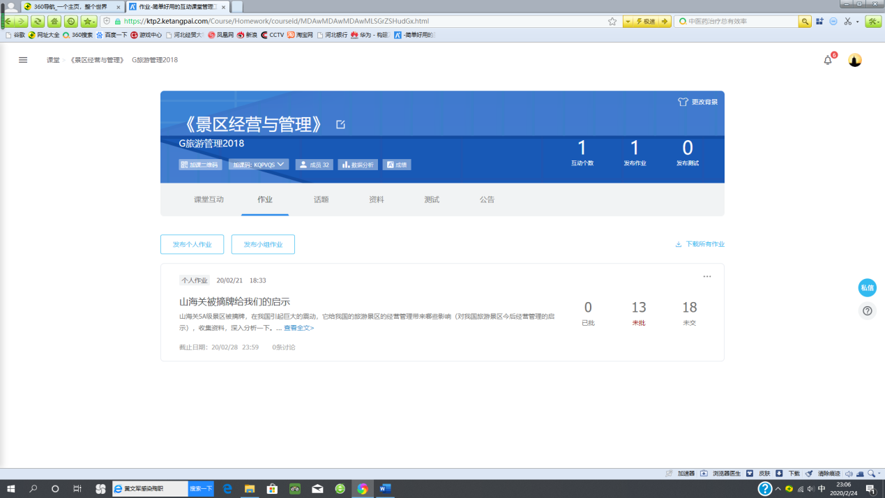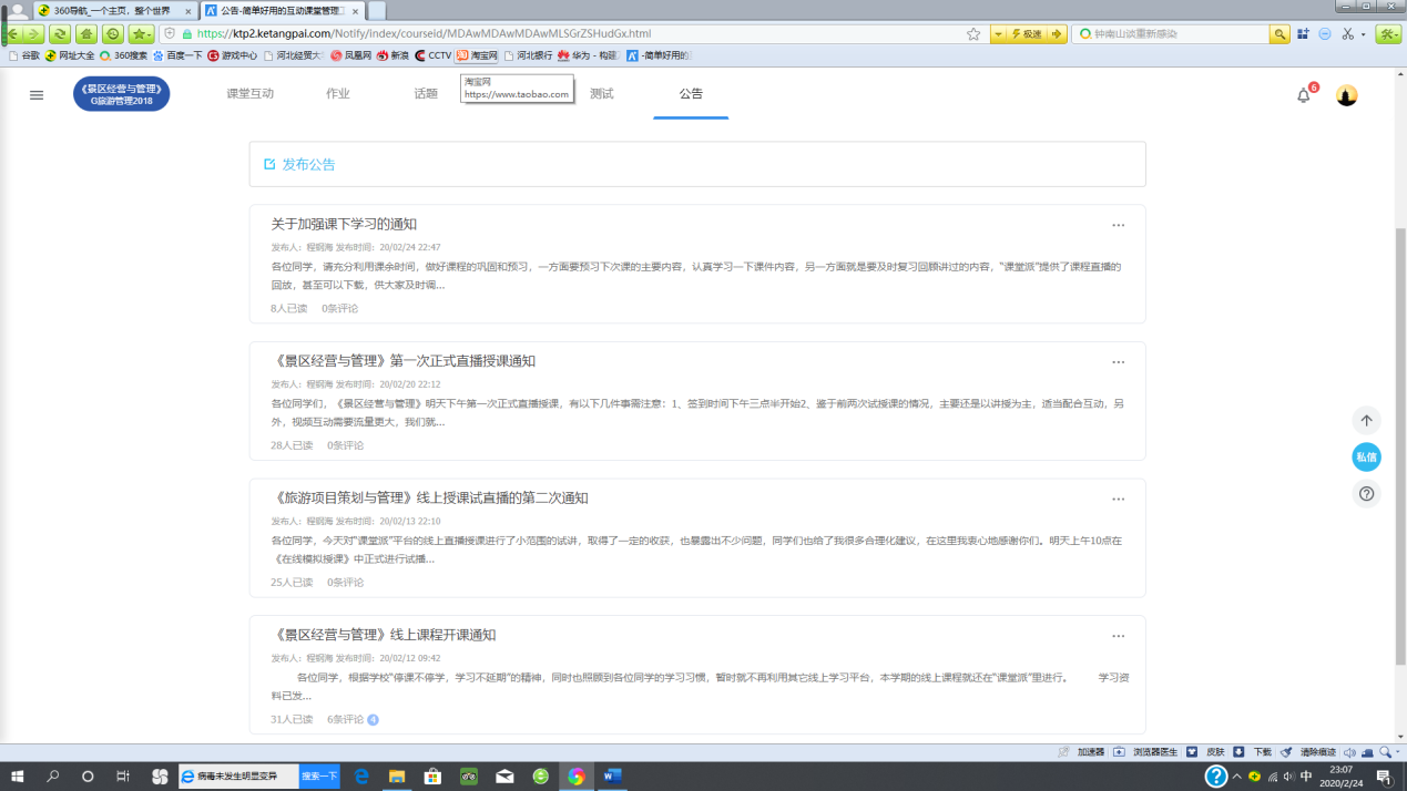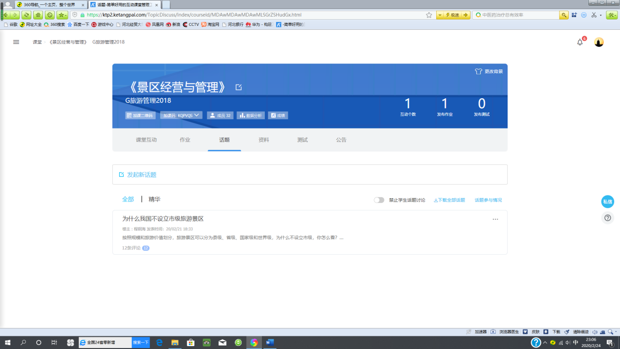 疫情最重要的时期即将过去,各行各业都在积极复工复产。旅游业也如此,很多景区已经开始恢复接待游客,并且为此推出了很多有针对性的举措,比如景区容量的控制,游客行为的引导,经营管理的调整,宣传营销的改进,等等,既为旅游业的复兴,也为整个社会经济的恢复提振了信心,同时也为专业的学习提供了很多崭新的内容和素材。通过分析旅游业发展对策,提振员工战胜疫情的信心。