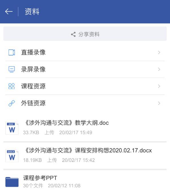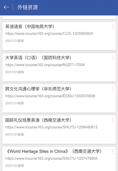 因为课程主体为大三员工,大三员工自制力与自学能力相对较高,因此采取了以培养员工自学能力和高效率学习为导向的引导式教学。根据课程主要内容体系,在发布课程PPT的同时,向同学们推荐慕课、网易公开课、公众号以及相关app等资源(截图如下)。