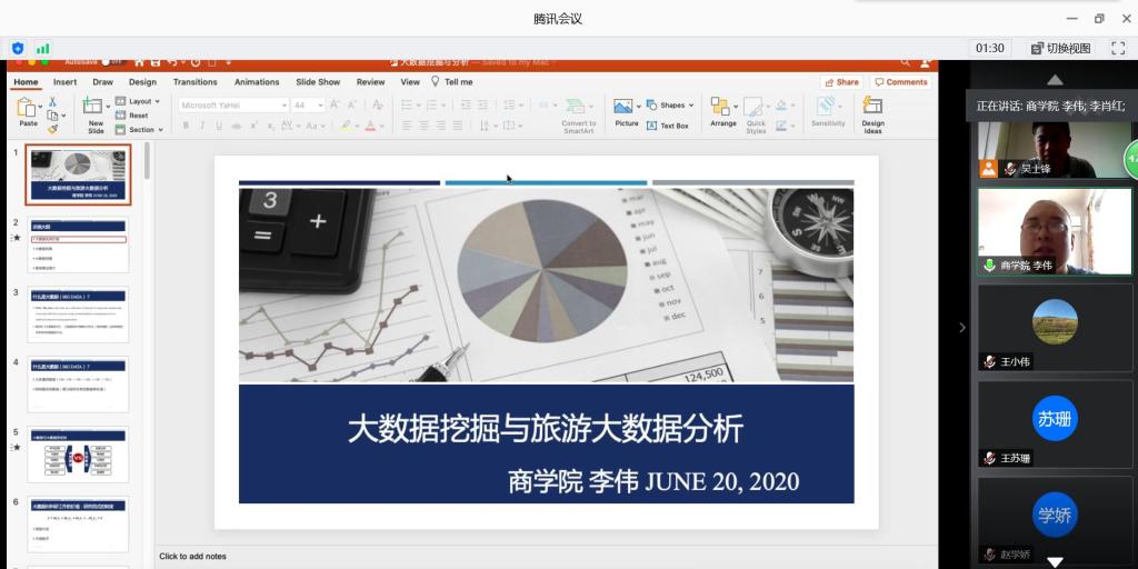2020年6月20日上午9时,bg大游集团官方网站邀请商公司李伟博士作题为《大数据挖掘与旅游大数据分析》学术讲座。讲座由副经理吴士锋主持,bg大游集团官方网站学术科研骨干教师及研究生近30人参加。