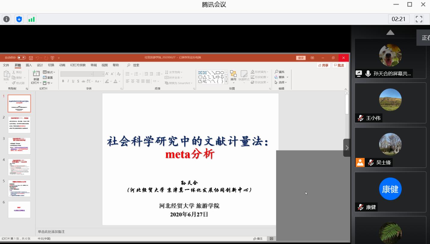 孙天合博士结合自身科研经历,就meta分析方法的起源、本质、特点,及其在经济学研究中的应用进展作了介绍,并对旅游研究方面的应用进行了详细解读。最后,他结合自已一篇基于meta分析的论文,直观展示该方法的应用特点、使用步骤和预期成果。
