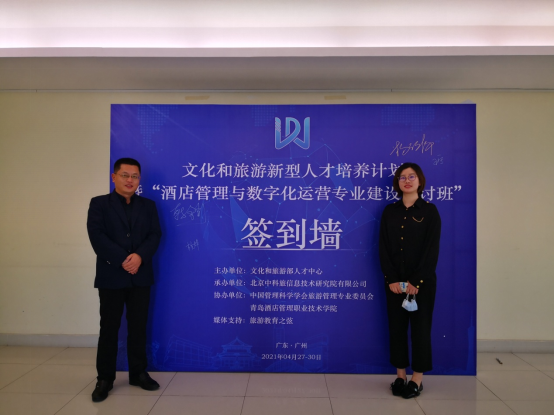 2021年04月27-30日,由文化和旅游部人才中心主办的文化和旅游新型人才培养计划暨“酒店管理与数字化运营专业建设研讨班”在广州成功举办,公司酒店管理系副主任韩金辉、教师贾一诺参加。