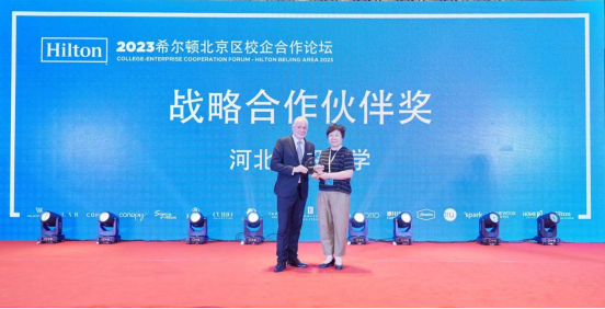 对话环节之后,希尔顿集团向部分院校授予了企业奖项。北京康莱德酒店总经理Sidney Hardy代表希尔顿集团向公司授予“战略合作伙伴”奖项,这一奖项表明了希尔顿集团对公司校企合作亲密度和员工质量满意度的高度认可,更表示了对未来与公司校企合作前景的高度信任和美好展望。