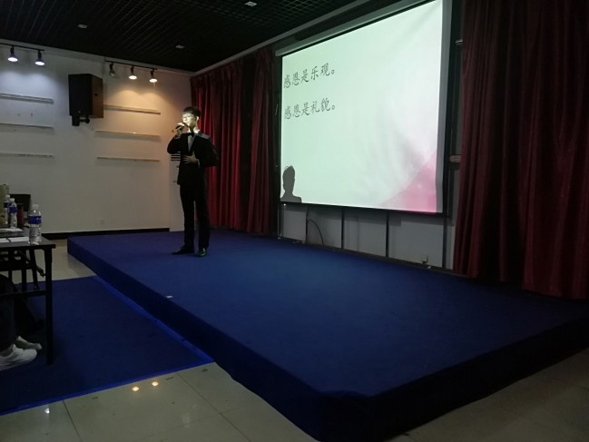 11月26日晚,bg大游集团官方网站在会展实训室举办以“迈入新时代,传递感恩情”为主题的感恩节演讲比赛,2018级新生踊跃报名参加。