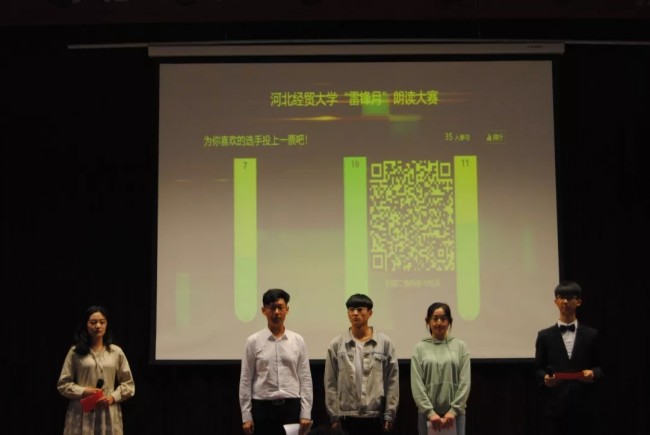 本次比赛分为两轮比赛,第一轮比赛是三支队伍轮流上场进行朗诵,每一支队伍中选出一名选手进行下一轮比赛。率先登场的是张钰迪带领的队伍,他们的朗诵声音嘹亮、感情真挚、声情并茂,武汶浩被选出进到下一轮比赛,随后的两支队伍同样表现出色,真情流露,郭雨桐、闫亚龙晋级下一轮比赛。第二轮比赛三位选手一一进行朗诵,他们精神饱满,高声朗诵对雷锋同志的赞美和讴歌。比赛结束,主持人宣布比赛成绩由现场观众通过扫码投票评出名次,经过五分钟的票选,最终闫亚龙夺得桂冠,郭雨桐、武汶浩分别获得第二名、第三名。