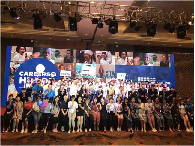 5月31日下午,bg大游集团官方网站17级酒店管理专业员工受邀参加了石家庄希尔顿酒店的专业教育活动,经理高宏,酒店教研室主任张宝春,班主任池晶,17级酒店管理专业全体员工出席活动。