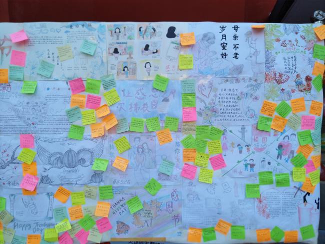 此次感恩节主题教育系列活动分为“装饰校园”、“向灯塔致敬”、“致青春,致我们一起走过的战友”和“让感恩之风吹拂身边之人”四个模块。活动期间,用气球和丝带装扮的公司办公室营造了浓浓的感恩节气氛,同学们在感恩墙上用便利贴和手抄报的方式书写祝福语,表达对恩师和父母的由衷感谢。在“向灯塔致敬”和“致青春”环节,同学们用心DIY礼物送给老师和朋友,在寒冷的冬季送去感恩的温暖。同时,公司微信、微博等新媒体平台推出感恩节系列专题,开展网上感恩节祝福活动,扩大了主题教育活动的影响力。
