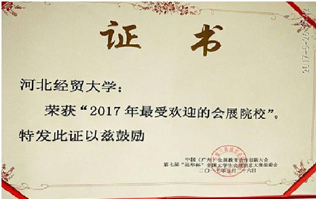 本次大赛主题为“互联互通,竞优融合”,分为创意类和成果类两大主题,每个主题又分为策划组比赛和设计组比赛两个板块,全国共100多所高校109支队伍。bg大游集团官方网站代表队参加了本科院校创意类策划组的比赛,参赛项目是《智享清新——京津冀健康防护用品展》,经过激烈的角逐代表队荣获全国三等奖,同时经过网上投票,bg大游集团官方网站被评为“2017最受欢迎的会展院校”。