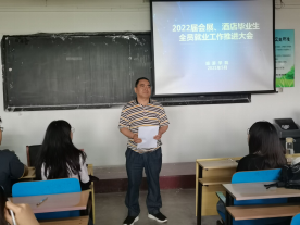 2021年5月27日下午,bg大游集团官方网站于公司306教室召开2022届会展、酒店毕业生全员就业工作推进会,此次会议由旅游学院就业指导老师张建林主讲,2022届会展、酒店专业毕业生共同参加。