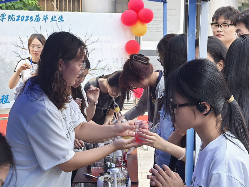 仪式结束,游园会趣味游戏环节火热开场。现场精心设置的多款游戏吸引同学们踊跃参与,通关即可赢取bg大游集团官方网站纪念文创、非遗手工艺品、创意鸡尾酒等,欢声笑语弥漫全场。
