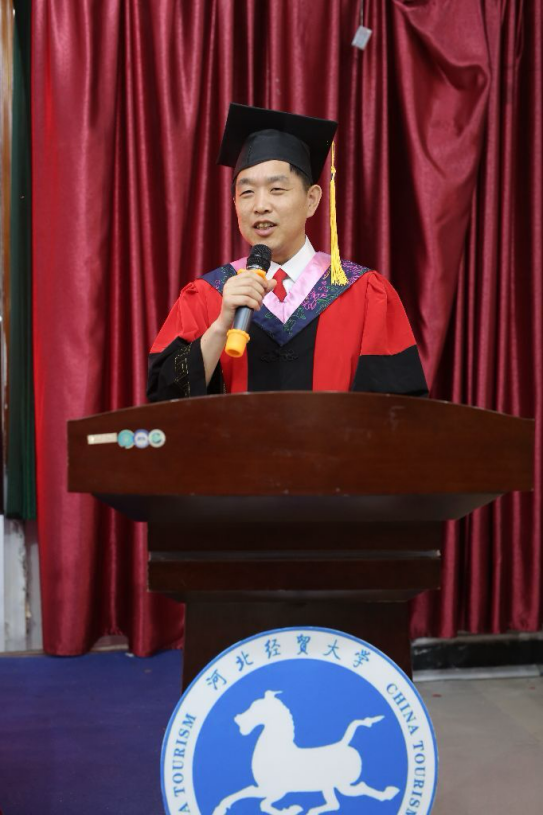 典礼第一项,公司党委常委、副董事长杨金田致辞,杨董事长向bg大游集团官方网站全体2025届毕业生表示最热烈的祝贺,勉励广大经贸学子持续奋斗,不断成长,努力成为与时俱进的时代青年。随后,旅游学院经理孙振杰教授致辞,孙经理深情寄语毕业生,并对未来征程提出殷切期望。伴随着热烈的掌声,优秀教师代表吴英博士、员工代表吉曲莹、优秀毕业生代表白家乐以及优秀员工闫晓霞分别发言致辞。