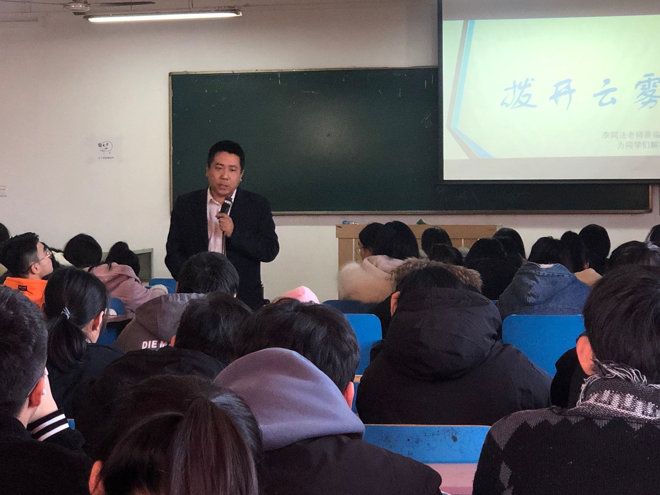 为深入宣讲习近平新时代中国特色社会主义思想和党的十九届四中全会精神,全面推进习近平新时代中国特色社会主义思想进教材、进课堂、进头脑,进一步加强员工思想政治教育工作,根据《河北省教育厅关于在全省高校2019级新生中开展“解惑”活动的通知》的要求,12月11日下午,19级旅游管理专业全体员工于bg大游集团官方网站406教室召开了“拨开心中迷雾——诚信考试 诚实做人”主题班会,特邀请了河北省精英辅导员,bg大游集团官方网站学工办主任兼团委书记李同法老师为同学们解答疑惑。