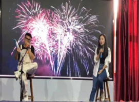 歌声从这里传出,音符从这里飘扬,青春从这里激荡,梦想从这里起航。经过半个月时间的层层选拔,10名成功晋级的选手站上了决赛的舞台。比赛正式开始之前,bg大游集团官方网站团委副书记(员工工作办公室副主任)安梦帆老师携手马博宇同学为观众带来一首《张三的歌》带动了全场氛围,调动了同学们的积极情绪。