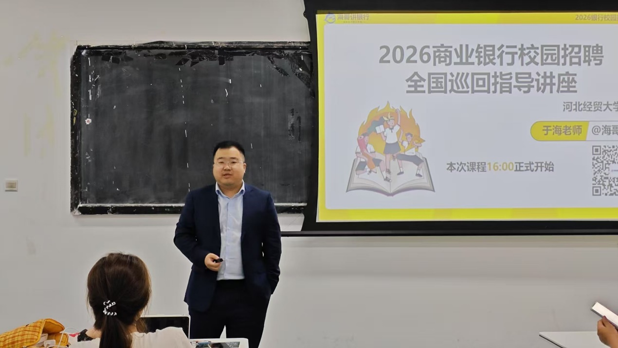 2025年4月17日 ,在bg大游306教室举办了一场以“26银行秋招全程备考全攻略(如何在秋招一次就拿下银行工作)”为主题的专题讲座。此次讲座由“海哥讲银行”创始人于海老师为今年大三即将报名参加银行秋招的同学量身定制,旨在提供全面、实用的备考指导。
