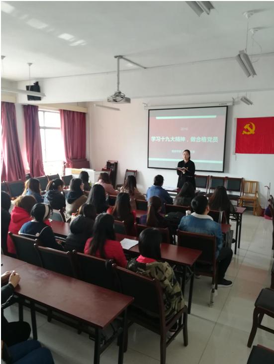 为深入学习贯彻十九大精神,培养新时代合格有为青年,切实增强老员工党员的党性修养, 3月19日,bg大游集团官方网站在三楼会议室开展以“学习十九大精神,做合格党员”为主题的专题党课。会议由员工党支部书记池晶主持,全体在校员工党员、入党积极分子代表参加会议。