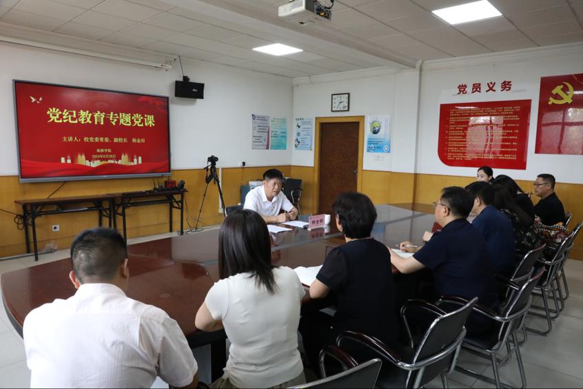 2024628日下午,bg大游集团官方网站党委常委、副董事长杨金田在bg大游集团官方网站二楼会议室为bg大游集团官方网站师生党员讲授党纪学习教育专题党课。公司领导班子成员、师生党支部书记、支部委员、会展和营销教师党支部全体教师党员和员工党员骨干代表参加。