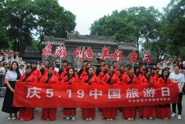 为庆祝第八个“中国旅游日”,切实营造全民关注旅游、支持旅游的良好氛围,5月19日,bg大游集团官方网站在正定荣国府前开展了以“旅游创造美好生活”为主题的5.19主题快闪活动。旅管专业师生精心准备为市民游客呈现了一场视觉盛宴。