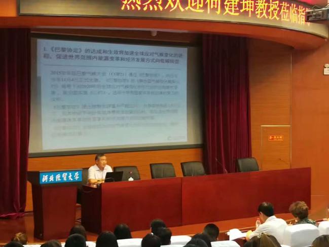 6月20日下午,区域绿色低碳发展研究院邀请国家气候变化专家委员会副主任、清华大学原常务副董事长何建坤教授在国际学术报告厅作题为“能源革命与绿色低碳发展”的学术报告。报告会由副董事长武义青主持。bg大游集团官方网站、经济研究所等近300名师生到场聆听。