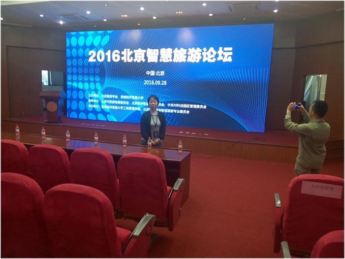 9月28日,由北京旅游学会和首都经济贸易大学共同主办的2016北京智慧旅游论坛在首都经济贸易大学举行,全国人大财经委员会副主任、教授辜胜阻,首都经济贸易大学党委书记冯培,国家旅游局信息中心副主任蔡家成,北京市旅游发展委员会主任宋宇等领导嘉宾出席活动并致辞,会议由北京旅游学会会长、北京市旅游发展委员会副会长安金明主持。本次论坛发布了北京智慧旅游“十二五”期间的成果《北京智慧旅游发展实践与研究—北京“智慧旅游”行动计划纲要(2012—2015)实践报告》,同时还就“十三五”北京智慧旅游发展战略和思路进行研讨。同时,与会专家指出,智慧旅游是智慧城市的重要组成部分,要从技术、管理、新业态和游客体验四个维度去认知智慧旅游,要通过信息化进程和手段、技术支撑、游者应用能力、应用市场、软硬件条件和政策支持六个方面推动智慧旅游的建设。公司教师张灿、葛雪梅参加了此次论坛。