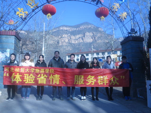 为了响应“体验省情,服务群众”、“互联网+”的社会实践主题,了解旅游景区周边村落使用互联网的现状,2016年2月23日,bg大游集团官方网站寒假社会实践小分队一行10人赴井陉县苍岩山镇朱会沟村开展了以“互联网+旅游,助力美丽乡村建设”为主题的社会实践活动。此次调研由公司党委书记贾书海、副书记耿会清带队,指导老师程钢海、张彦彦及6名员工代表参与。