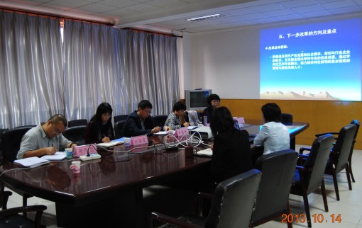 10月14日下午,公司党委常委、副董事长申富平、教务处处长李桂琴及相关人员来公司进行“专业综合改革”试点项目年度检查。会议由经理程瑞芳主持,书记贾书海、副经理祁红梅以及教研室主任、骨干教师和教务秘书参与了会议。