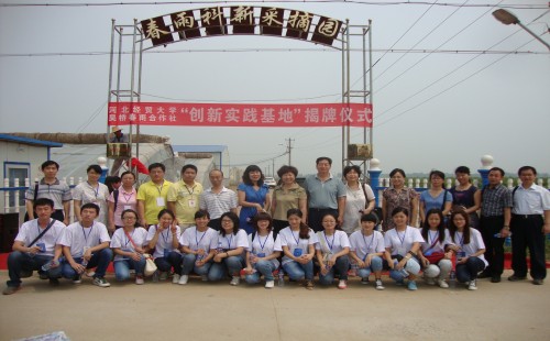 7月8日,bg大游集团官方网站创新实践基地揭牌仪式在春雨粮棉专业合作社采摘园举行。创新实践基地的建立标志着优势互补,资源共享,构建校-企-政联合育人和服务社会的长效机制的形成。九天里,师生们到吴桥杂技大世界旅游景区、柳洼、王辛、卢家庙等村进行了实地走访调研,他们采用问卷的形式对游客调查采访,并走家串户访问了三百余户群众。7月12日晚上,师生们在柳洼村举办了一场别开生面的建设美丽乡村联欢晚会,周边一千余名群众观看演出。为了促进农民由发展传统农业向现代化农业的思想转变,7月13日,bg大游集团官方网站师生还在柳洼村组织了农业旅游培训专项讲座,解答群众对发展“农家乐”的困惑与问题。