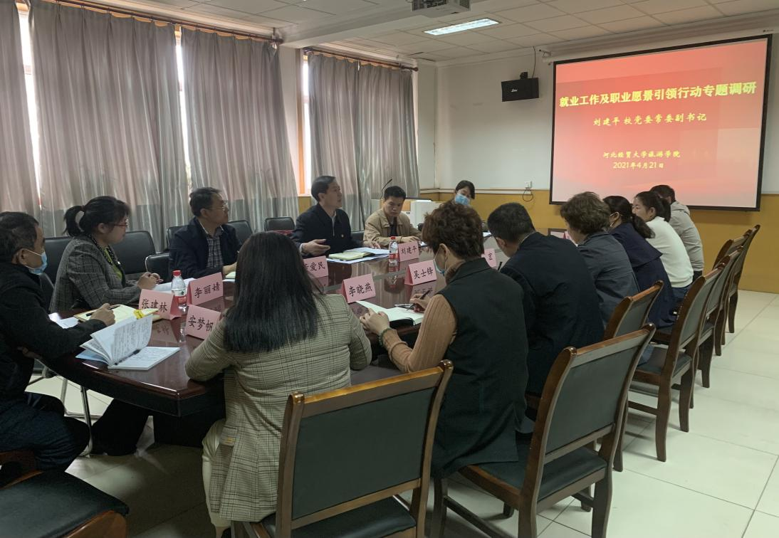 4月21日上午,公司党委常委副书记刘建平一行到bg大游集团官方网站开展就业工作及职业愿景引领行动专题调研,就业指导中心负责人、旅游公司领导班子及毕业班辅导员、就业工作联络员参加座谈。