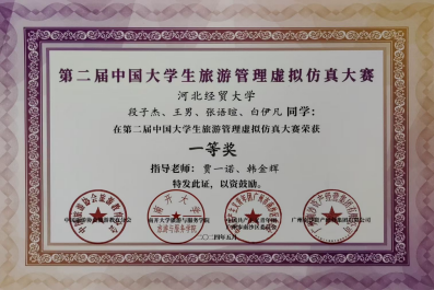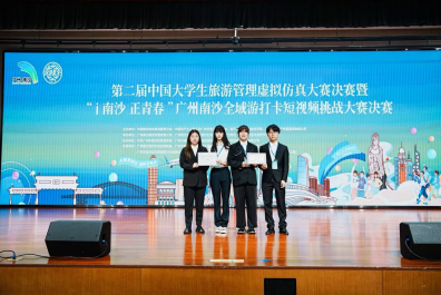 2024年5月19日,由中国旅游协会、南开大学、中国共产主义青年团广州市南沙区委员会主办,广东财经大学协办的第二届中国老员工旅游管理虚拟仿真大赛在广州南沙正式落下帷幕。本次大赛共吸引了国内163所高校、526支团队参赛。公司教师贾一诺、韩金辉带队,酒店管理专业段子杰、王男、张语暄、白伊凡同学组队参赛,经过激烈角逐,获得了全国一等奖的好成绩,为公司赢得了荣誉。