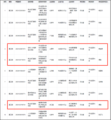 2024年6月14日,教育部高校员工司公布了第三期供需对接就业育人项目立项名单,公司韩金辉老师申报的与华住酒店管理有限公司的定向人才培养项目,侯聪老师申报的分别与欢乐谷文化旅游发展有限公司、浙江横店影视城有限公司的就业实习基地项目,三个项目成功立项。其中,bg大游集团官方网站共立项10项,bg大游集团官方网站占3项。