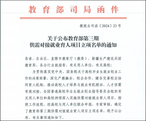 喜报|公司3个项目获教育部第三期供需对接就业育人项目立项