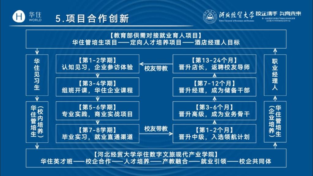 公司经理孙振杰受邀作为华住集团深度合作优秀本科院校的代表,在大会上作教育部供需对接就业育人项目优秀案例建设经验的报告分享,详细讲解了双方共建定向人才培养项目的合作历程、合作内容、合作成果、合作经验,并重点总结和分享了双方在合作机制、合作模式、合作平台、合作领域等方面的创新与探索,以期为产教融合共同体框架下的校企合作项目深度开展提供有益的参考和借鉴。