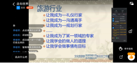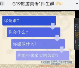为落实“小咖进课堂”实践教学活动,大力推进实践教学改革,引入企业资源进课堂,全面提升课程的教学质量和员工的综合素质,2021年10月28日,我们聘请文化和旅游部全国文旅劳动模范陈云志老师在钉钉平台为2019级高本旅游管理班员工进行了一场以“走向世界”为主题的讲座,由李辉老师主持。