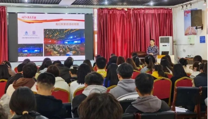 夏经理首先介绍了公司策划执行的博鳌论坛、一带一路高峰论坛、进博会、G20峰会等高端会展项目,并以亲自策划运营的项目为例,向同学们介绍了会展项目策划的流程、策划的创新点等方面的内容,并以会展专业毕业生的身份向同学们介绍了成长经历和职业发展前景。
