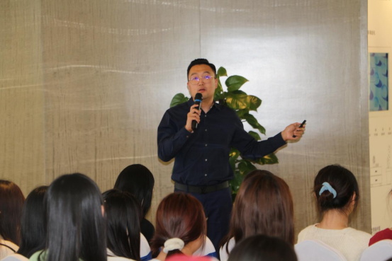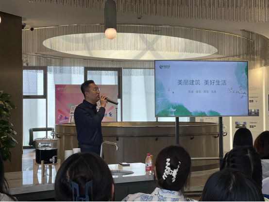 在楼盘的会客厅,绿城中国石家庄营销总经理徐亮为我们详细而具体地讲解了绿城中国的品牌理念、项目建筑风格与特色,为同学们解读了绿城中国的营销案例,并对于同学们提出的相关问题进行了专业性的回答。通过徐总经理的介绍,使我们了解了绿城中国对于建筑的独特审美风格。热情的服务、贴心的配置、专业的讲解让同学们深入其中。在讲解后,同学们咨询了关于入职条件、房地产行业发展趋势、如何做好营销等问题,徐总经理从各个方面进行剖析与解答,让同学们更加坚定了自己未来的职业规划。