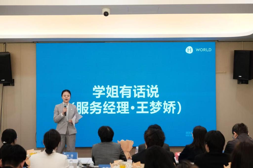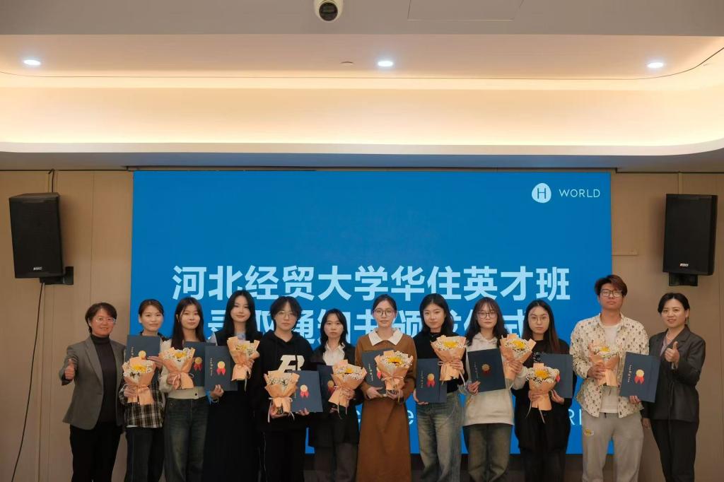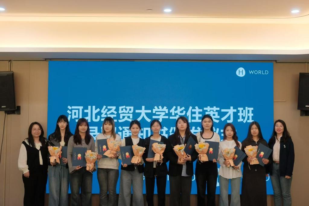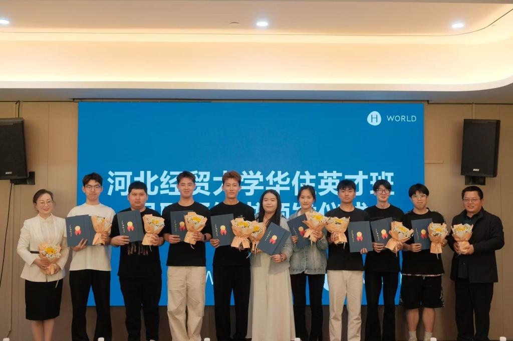 公司党委副书记王翠改、河北省区运营官刘静、HRBP吴辉峰分别致辞,祝贺同学们入选华住英才班,并为同学们颁发了华住集团录取通知书。企业班主任侯洁、校企负责人刘浩分享了华住集团的企业哲学、企业文化人才观。公司24届优秀毕业生、服务经理王梦娇分享自己的职业成长历程,华住实习生王业壮、何泽阳、邸梦豪、吴志豪分别从前台、销售不同的岗位视角,讲述事件中的收获与挑战。计然老师和韩金辉老师作总结发言,寄语同学们拥抱行业变革,在未来的职业道路上“脚踏实地,仰望星空”。