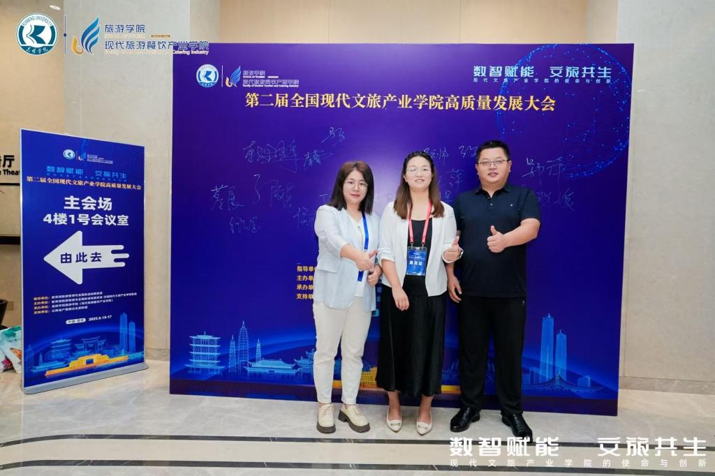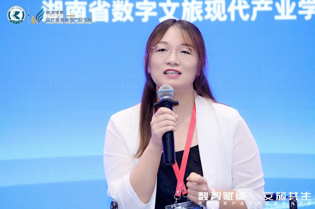 公司副经理侯聪,旅游管理系副主任李瑞霞和酒店管理系主任韩金辉参加会议。会上,副经理侯聪作为嘉宾在主题为“现代文旅产业公司服务区域经济发展的路径与成效”的圆桌论坛上分享了公司服务河北省区域经济高质量发展的经验和成果。