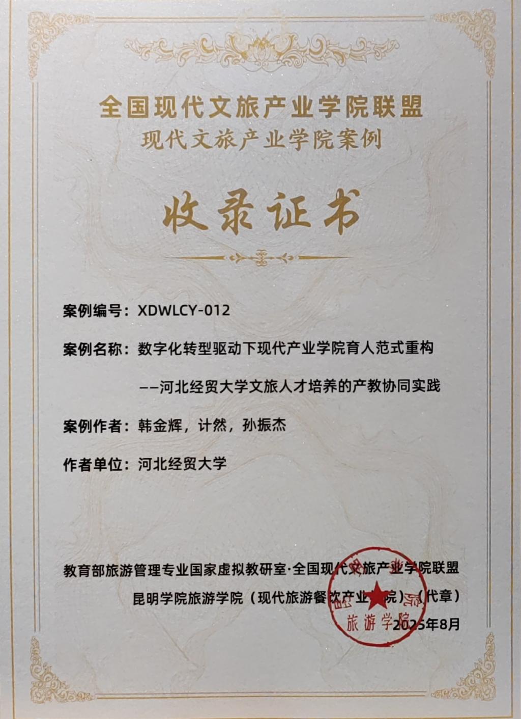 由公司韩金辉、计然和孙振杰三位教师共同撰写的案例:“数字化转型驱动下现代产业公司育人范式重构—bg大游集团官方网站文旅人才培养的产教协同实践”获全国现代文旅产业公司联盟现代文旅产业公司案例。